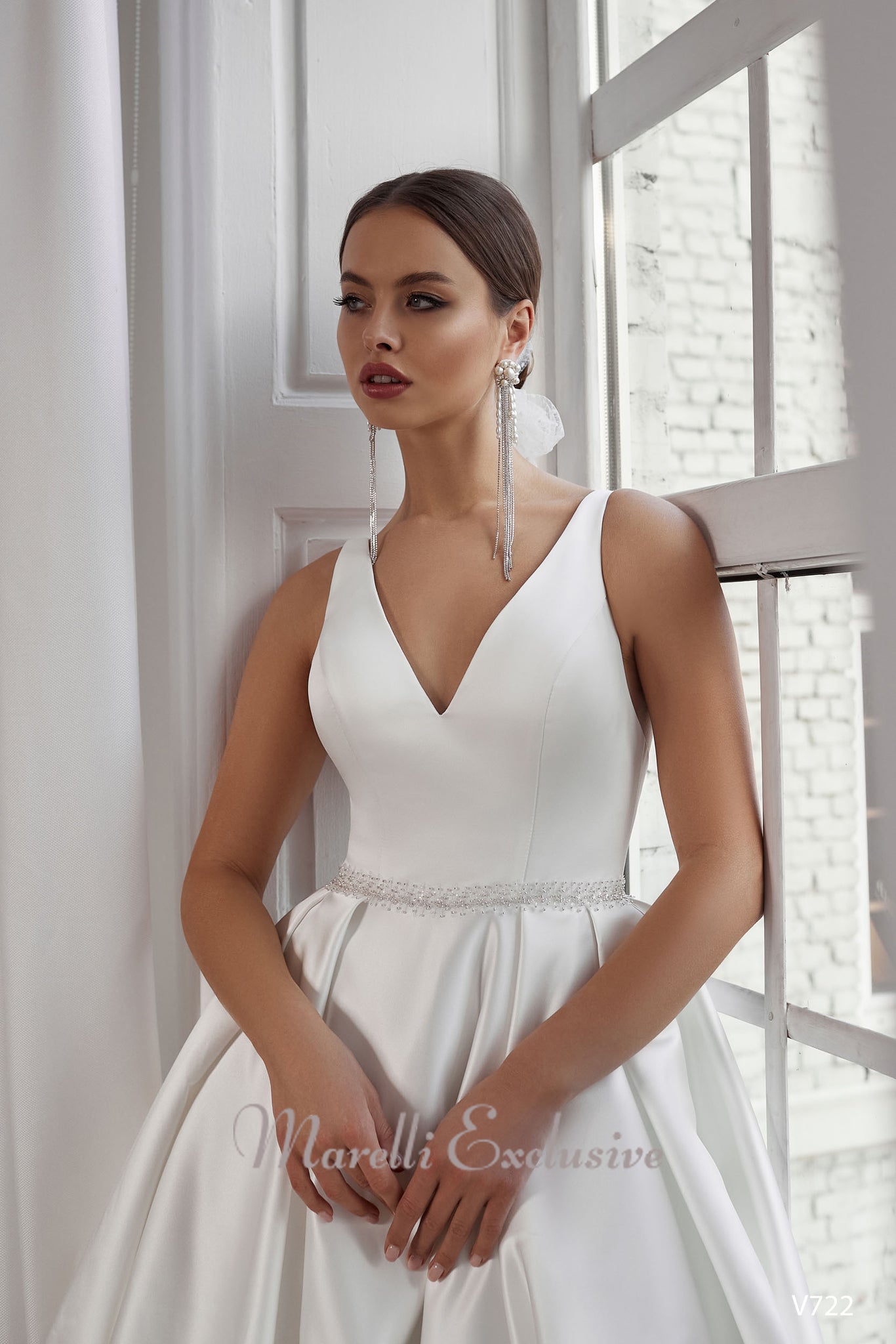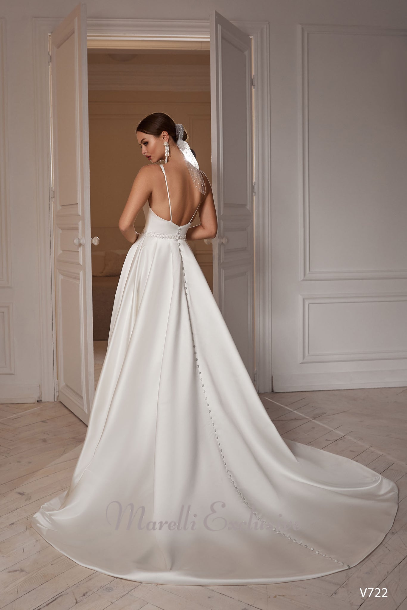 This beautiful wedding dress is simple, yet elegant, giving you the perfect look!  The sleeveless dress is sleek and flattering.  It has a stately look to it and is perfect if you are looking for something simple, but something that will definitely make an impact.