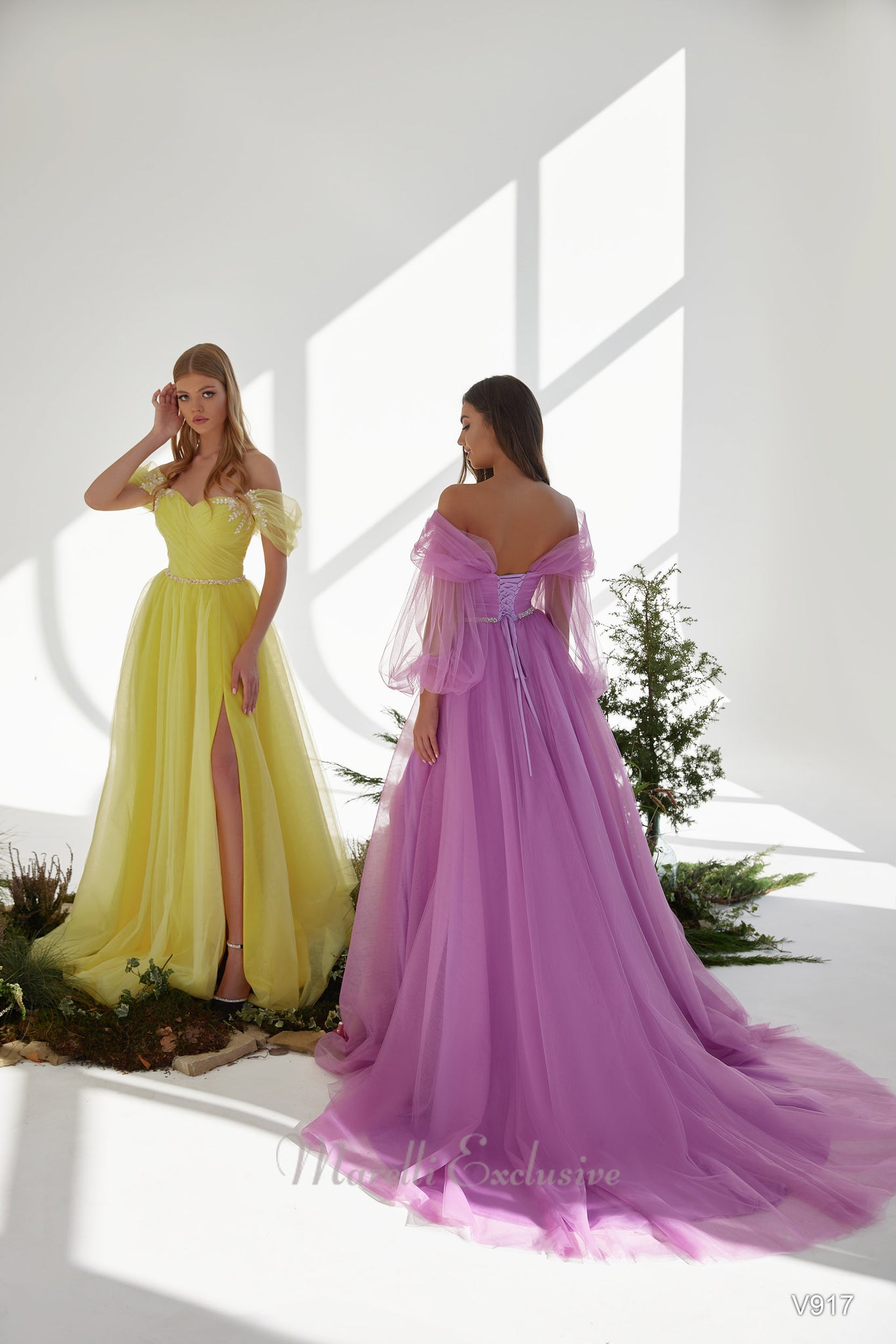 Romance is in the air with this full-length off-the-shoulder bridesmaid gown. This lovely dress features a flattering sweetheart neckline and sparkling jeweled embellishments. It has a lovely tulle skirt and mid-thigh slit. This stunning gown is available in coral, lilac, and yellow.